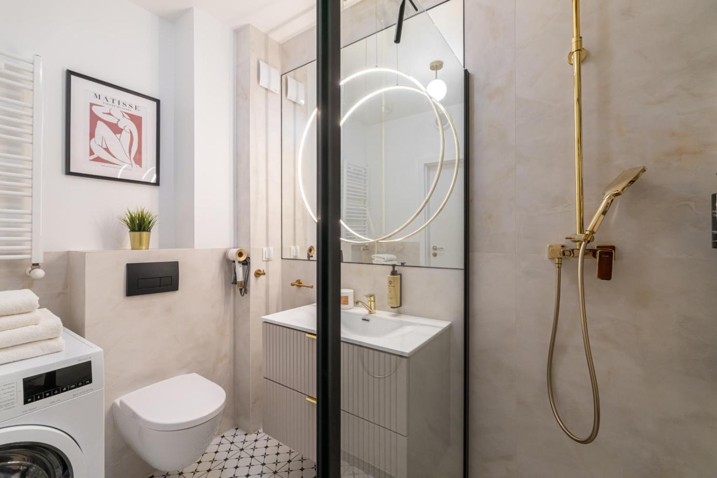 Apartament typu Superior z 1 sypialnią. Offering free toiletries, this apartment includes a shared bathroom with a shower and a hairdryer. In the fully equipped kitchen, guests will find a stovetop, a refrigerator, a dishwasher and kitchenware. This apartment is air-conditioned and features a seating area with a flat-screen TV, a washing machine, a tea and coffee maker, a dining area, as well as a wardrobe. The unit offers 2 beds. Apartament - 4 osobowy. Powierzchnia pokoju ok.: 35 mkw. ;